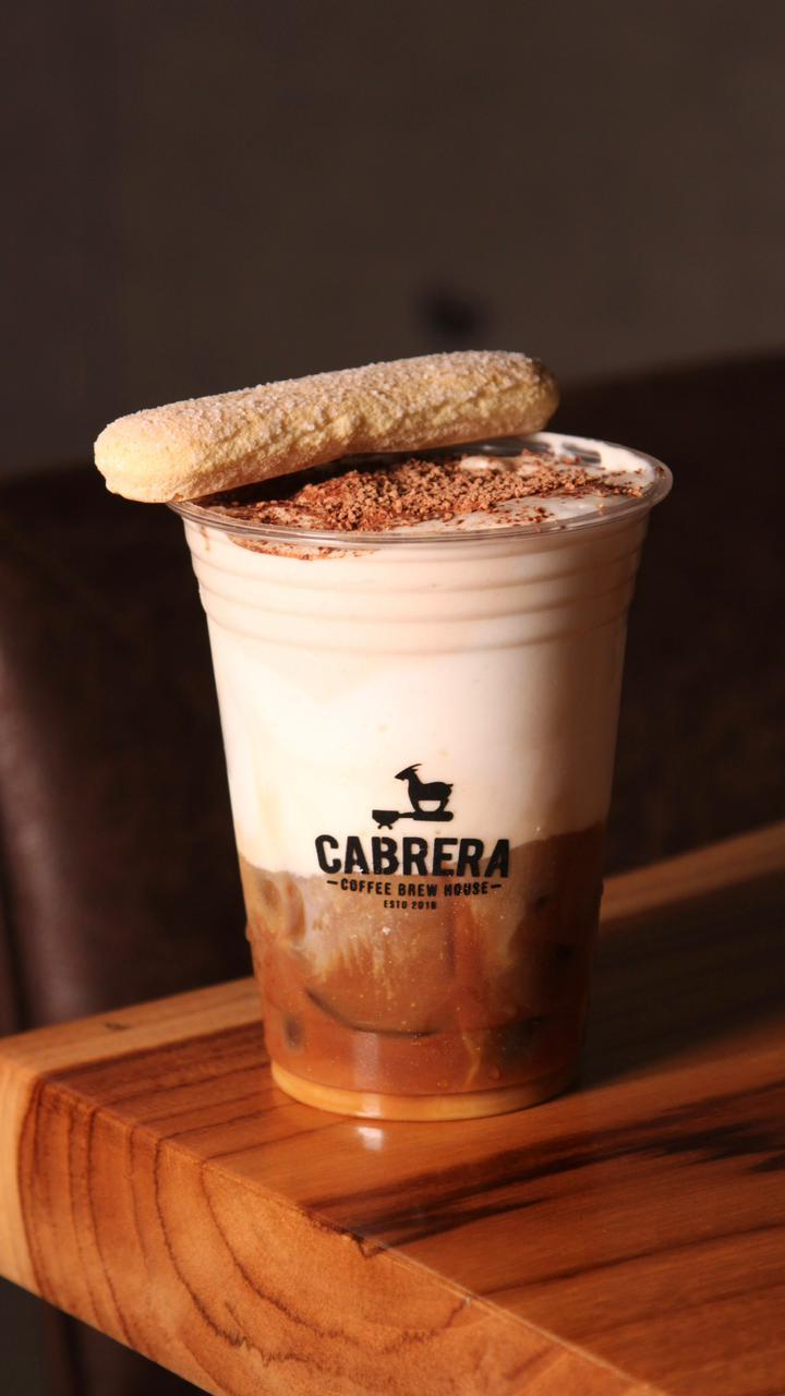 Cremoso iced latte con heavy cream de queso mascarpone, sirope de tiramisú, topping de cacao y galleta Savioardi.